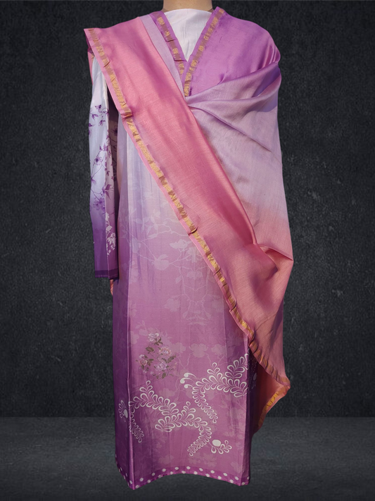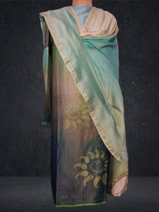 Semi Stitched Chanderi Casual Suitset
