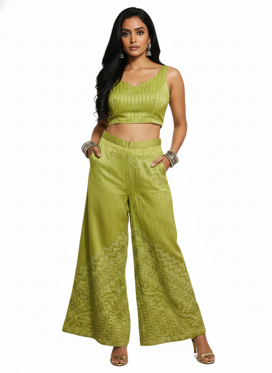 Formal Chanderi Zari embroidered Palazzo pant