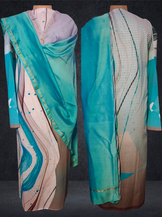Semi Stitched Chanderi Casual Suitset