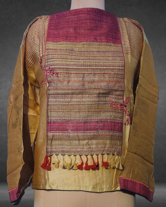 Chanderi Semistitched Blouse with Bhujodi Shawl Elements
