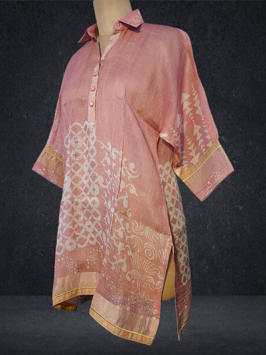 Semi Stitched Chanderi Zariwoven Short Tunic