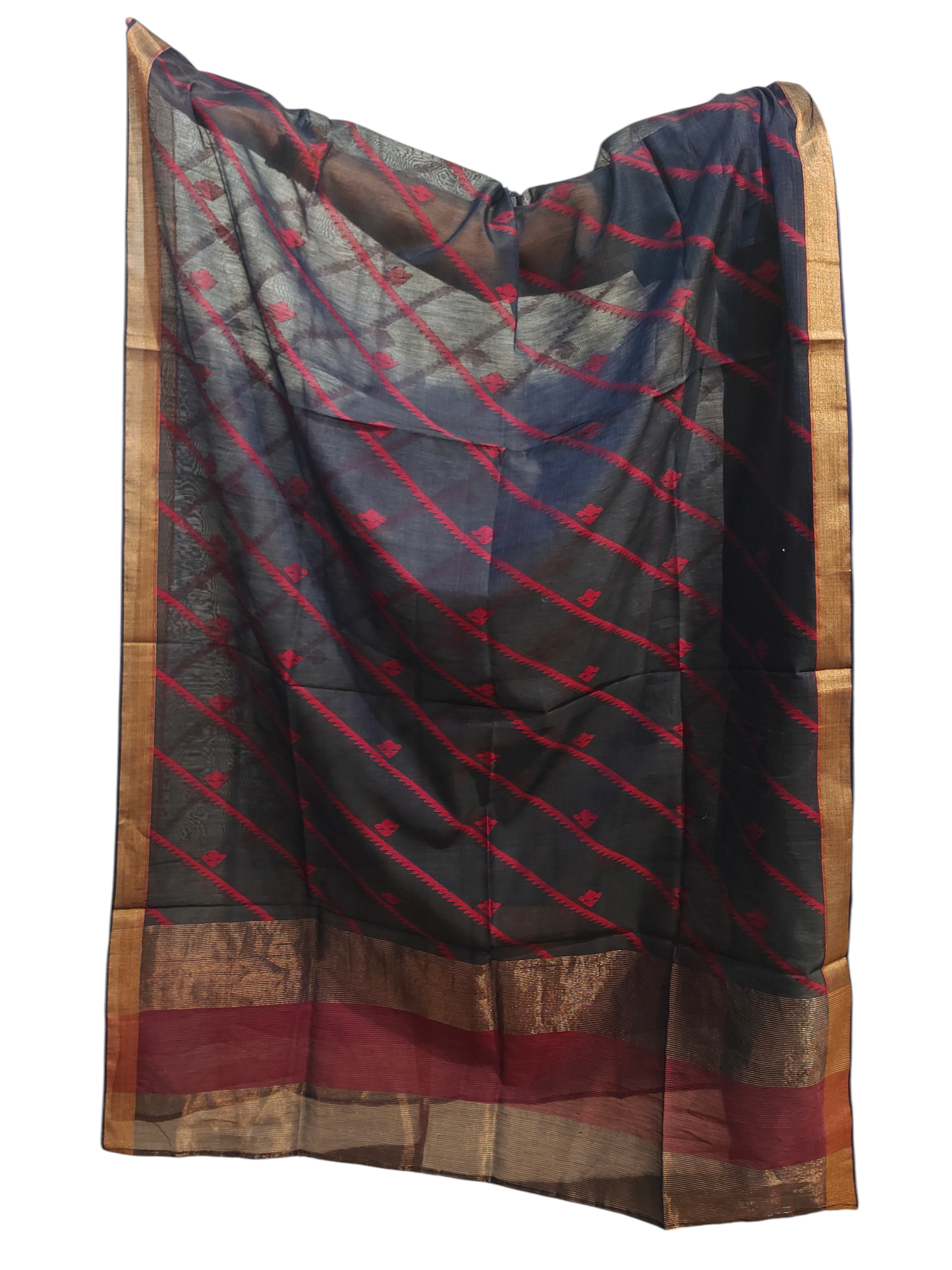Midnight Blue & Crimson Woven Dupatta
