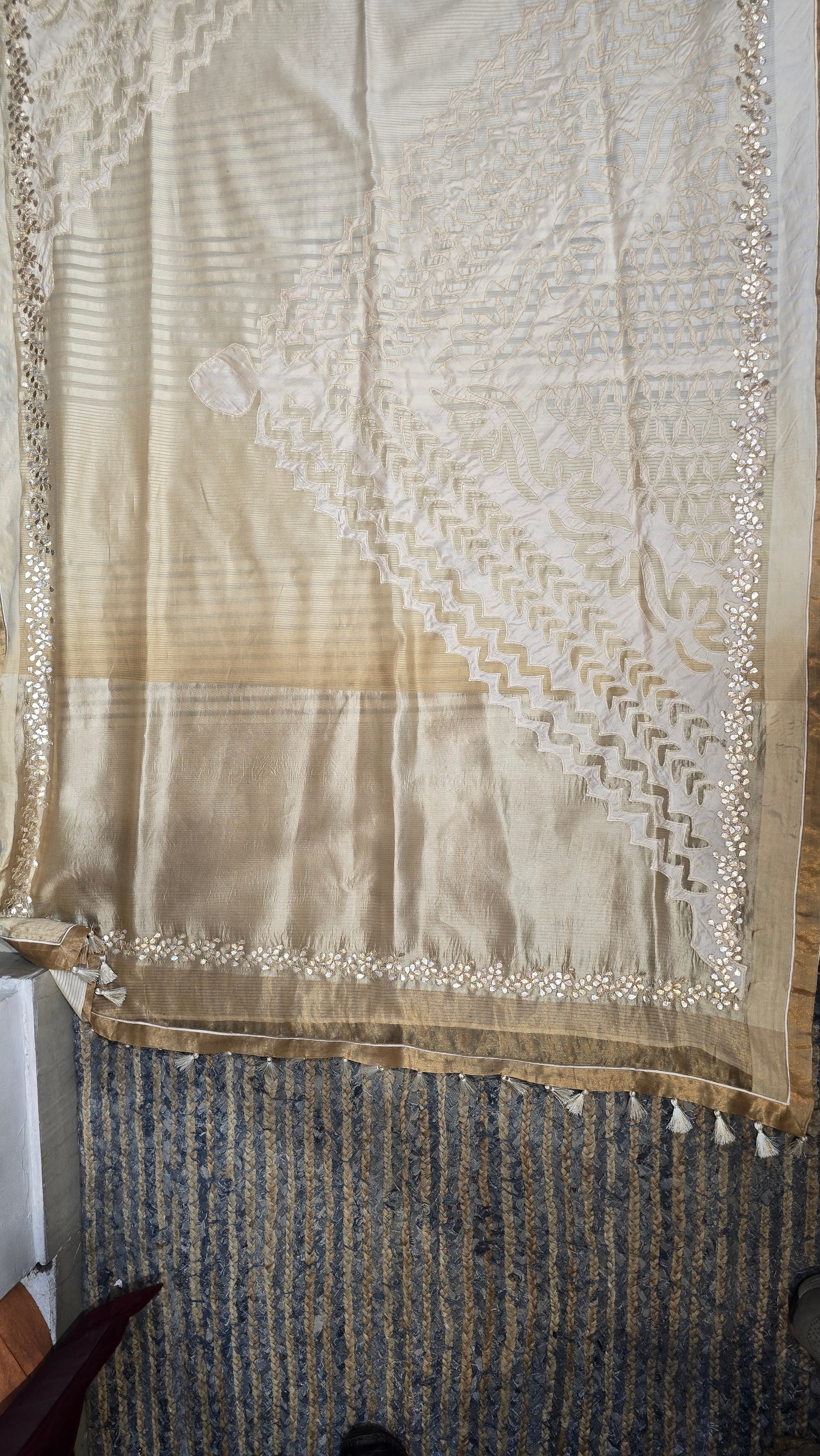 the saree is 5.5 mtrs in length in chanderi silk with a 45 inch width