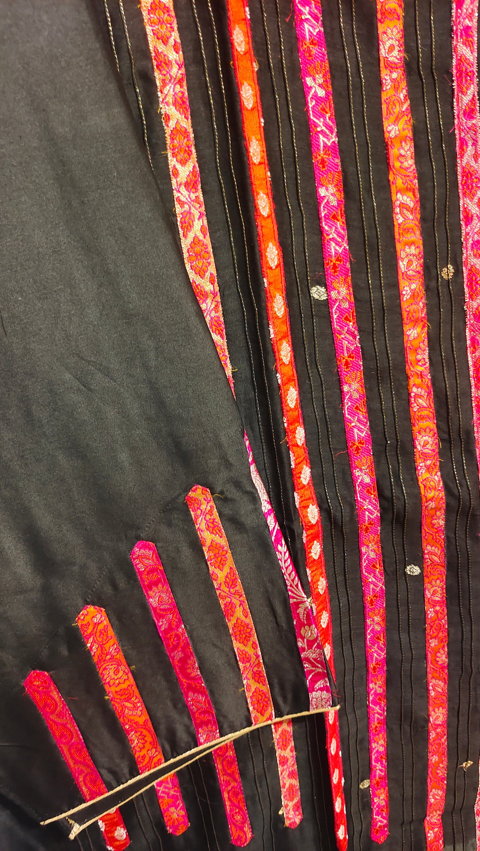 Bottom fabric is coordinated with kurta colour as a 2.5 mtr cotton satin fabric that can be styled and tailored to any bottom style as desired