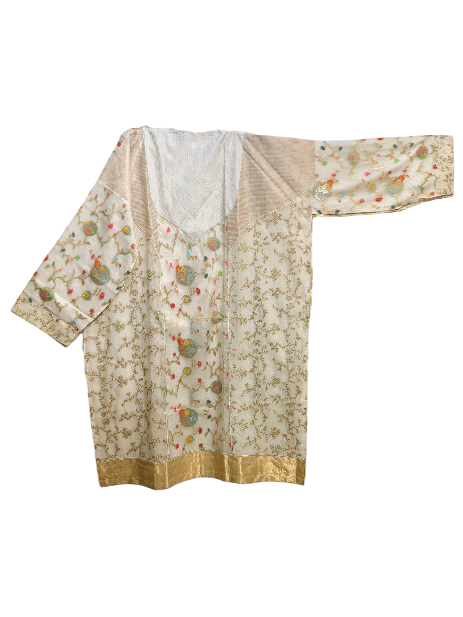 • Chaand Ivory kota silk kurta with multicolour resham floral vine jaal in weaving