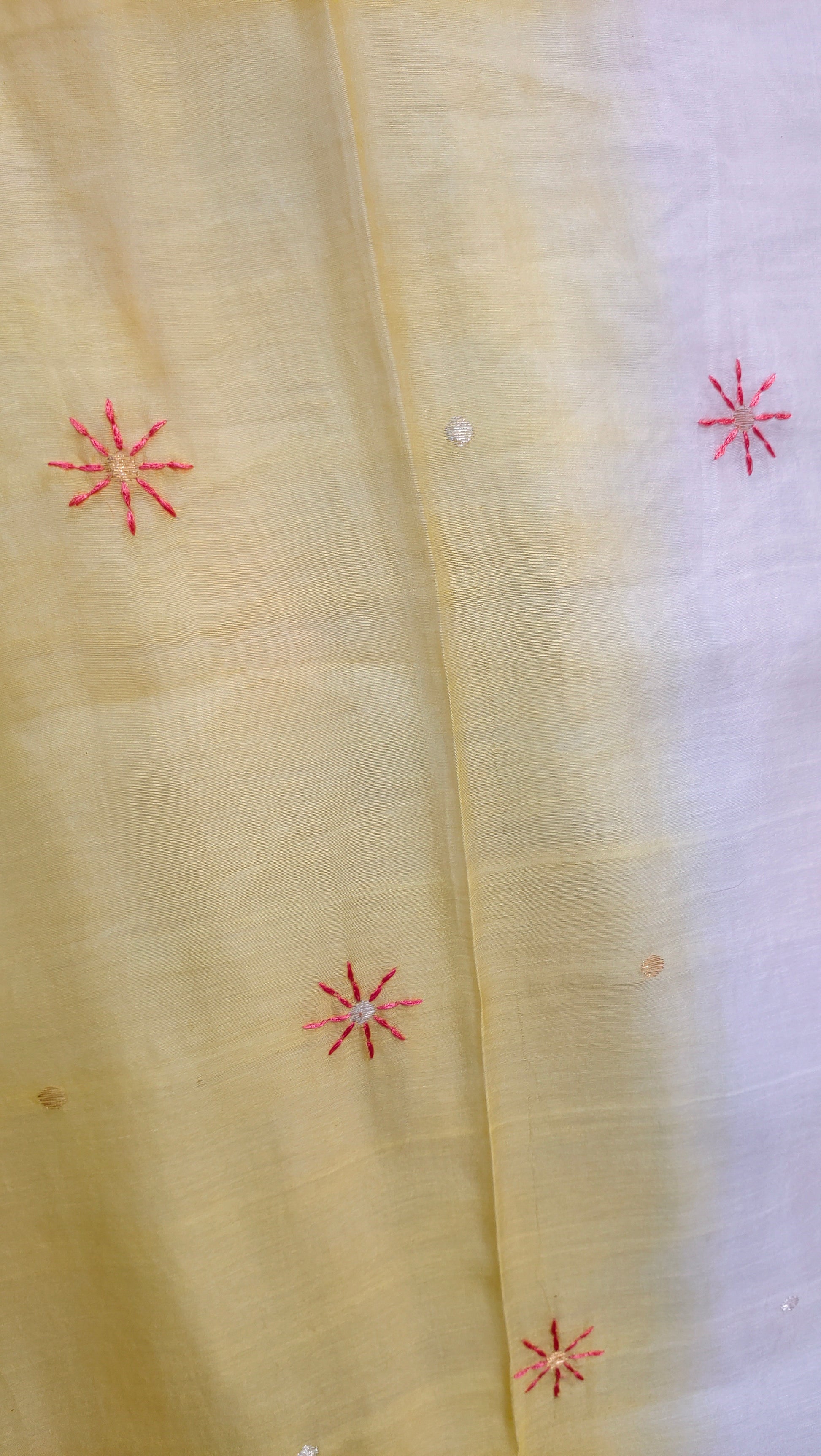 • Silk chanderi dupatta in Kesar Yellow to Gulnaar Rose gradient with star motifs