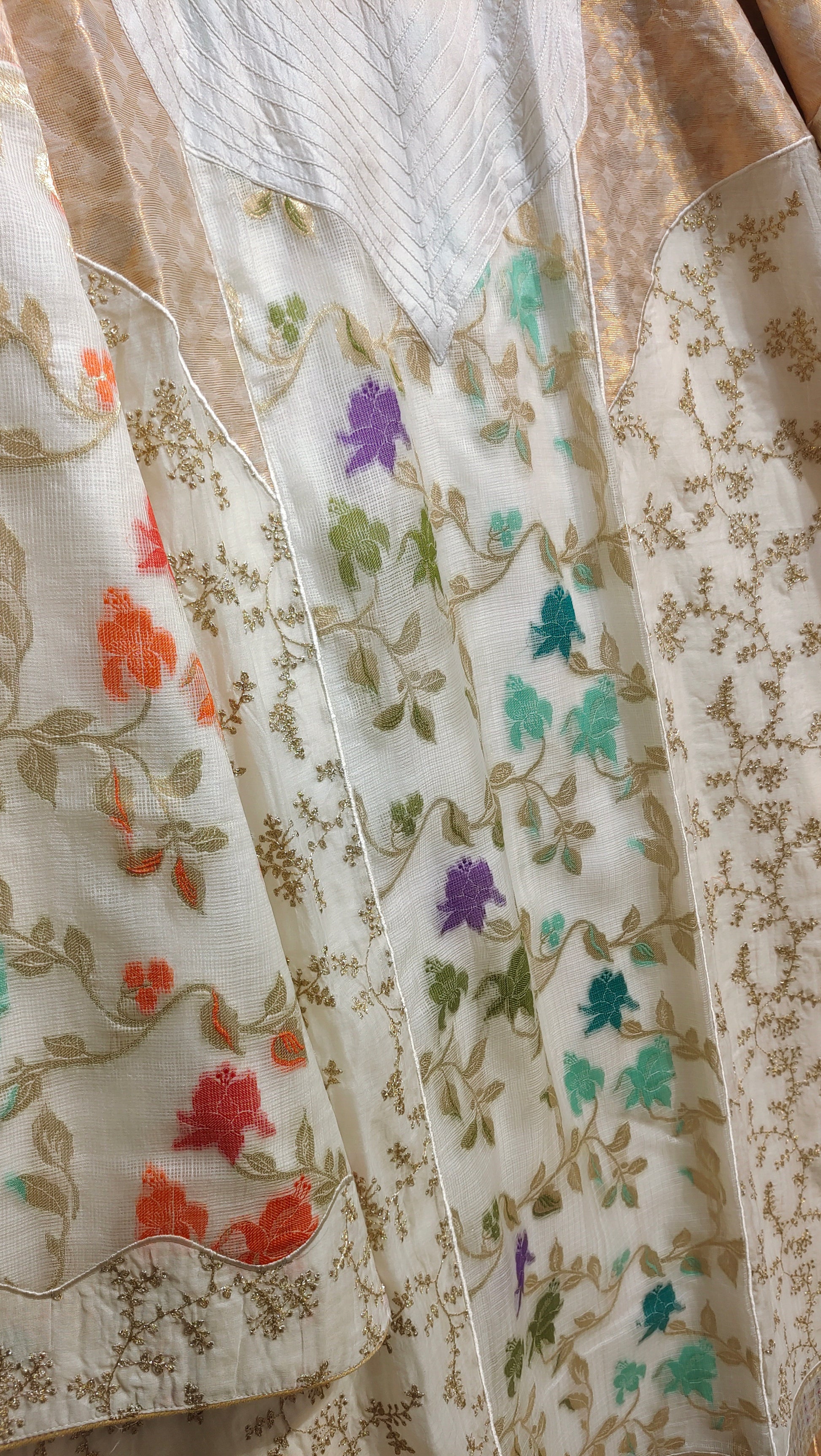 "The kurta is completely semistitched and customisable with any neckline design style with a maximum length achievable as 48 inches and a single side ghera as 32 inches prelined with fine cotton mal for extra comfort"