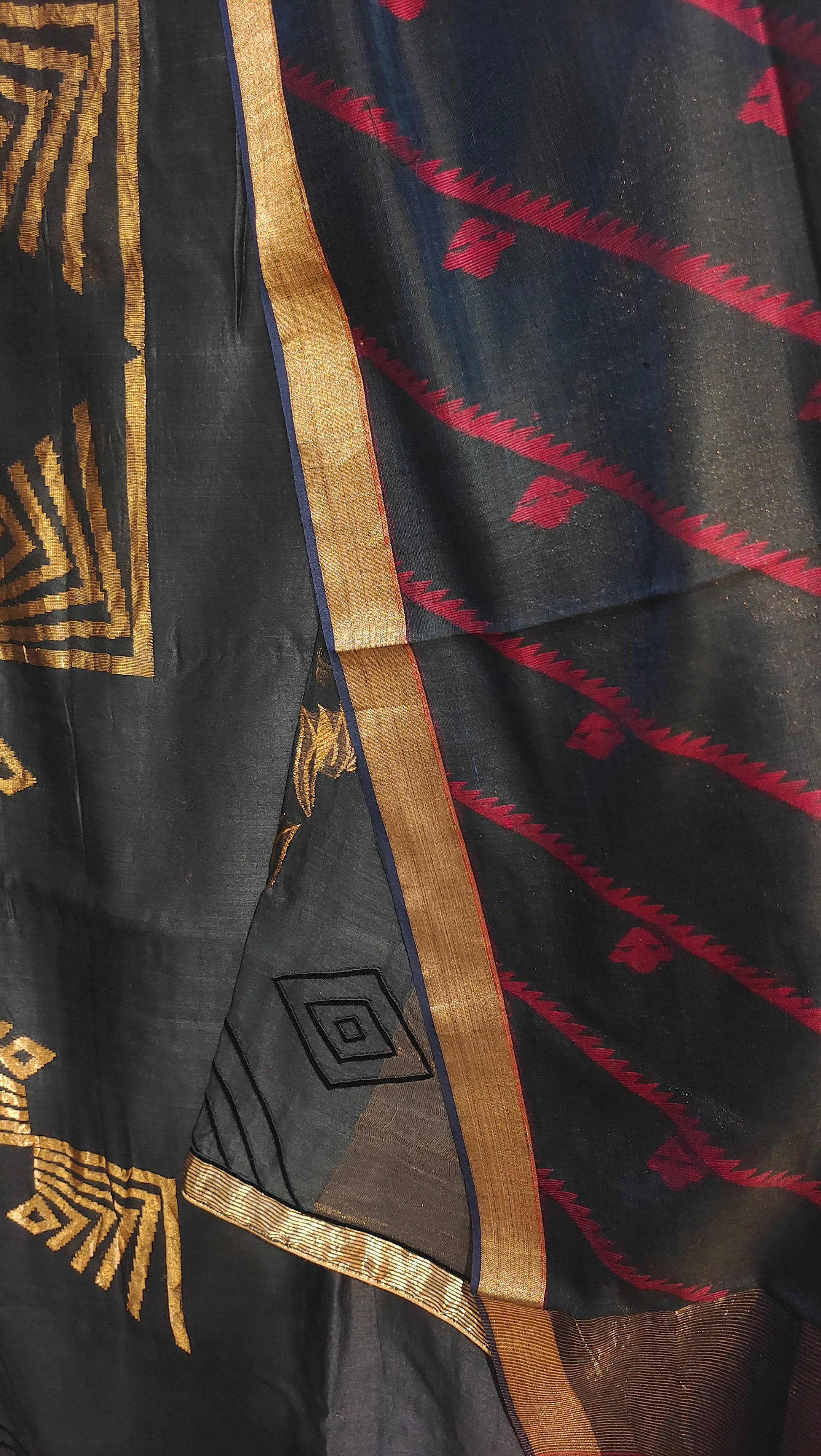 The dupatta is designed in silk chanderi in size of 38" x 2.5 mtrs.Dimensions can be slightly modified on request