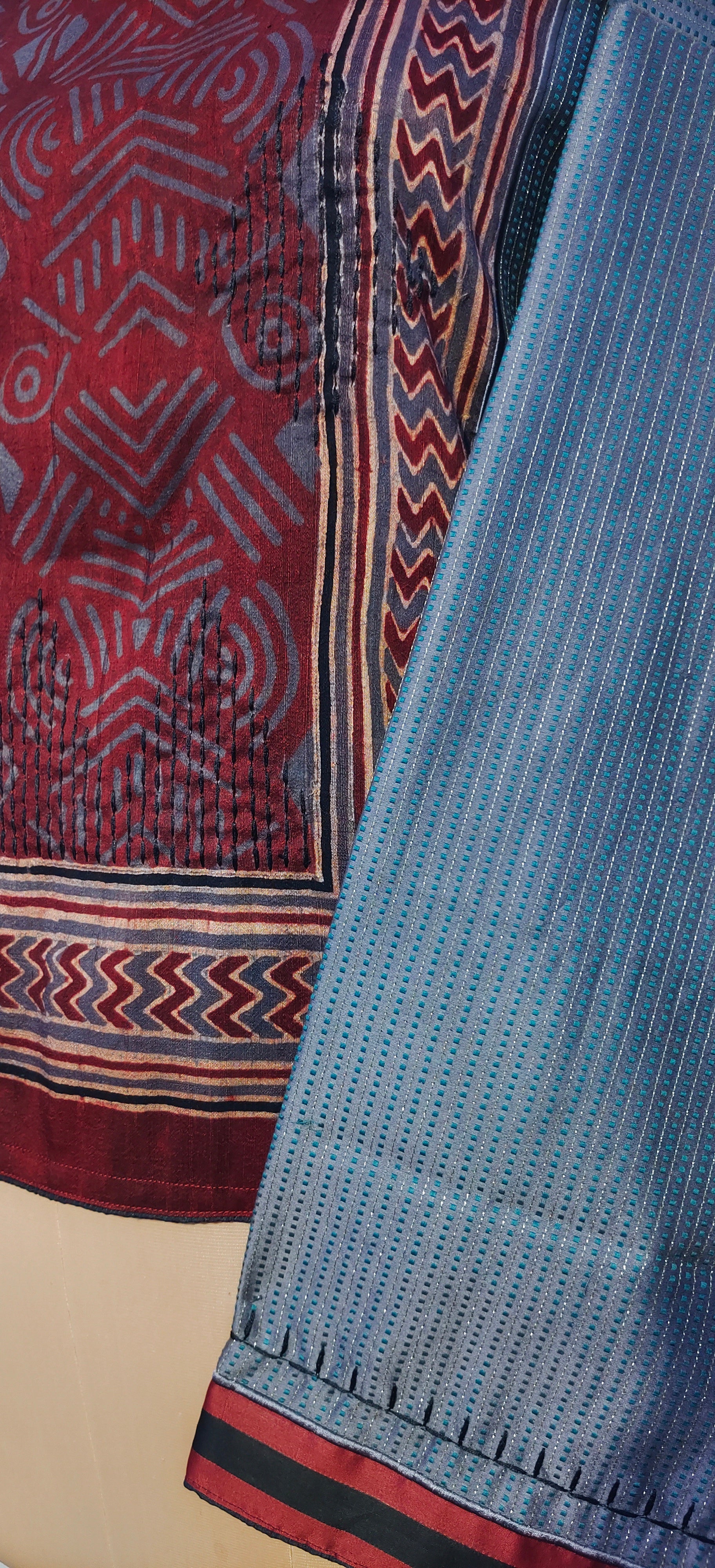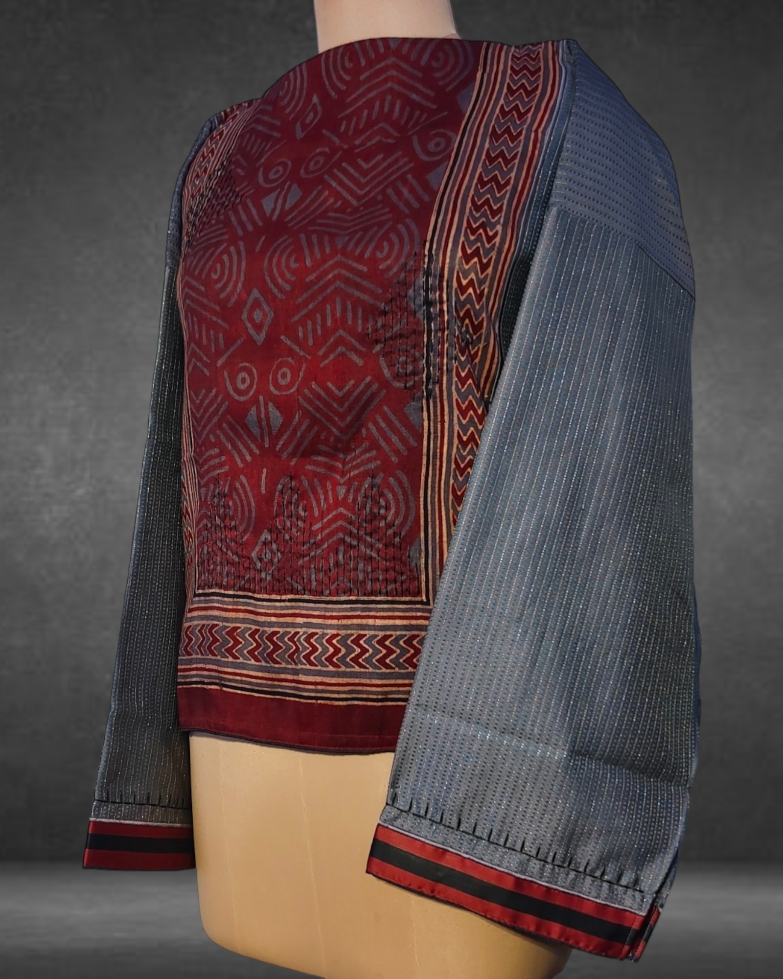 Semistitched Chanderi Silk Ajrakh Formal Ɓlouse