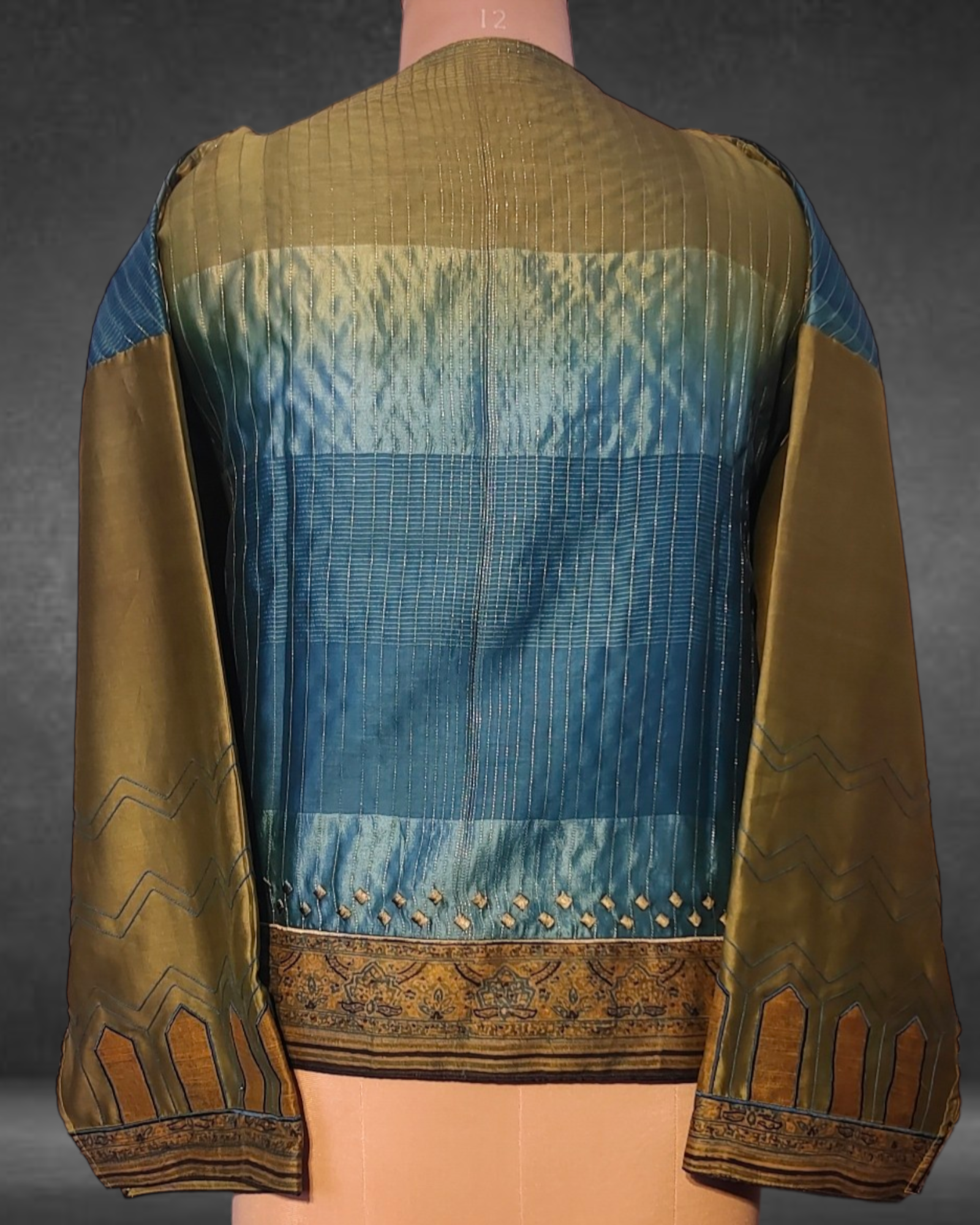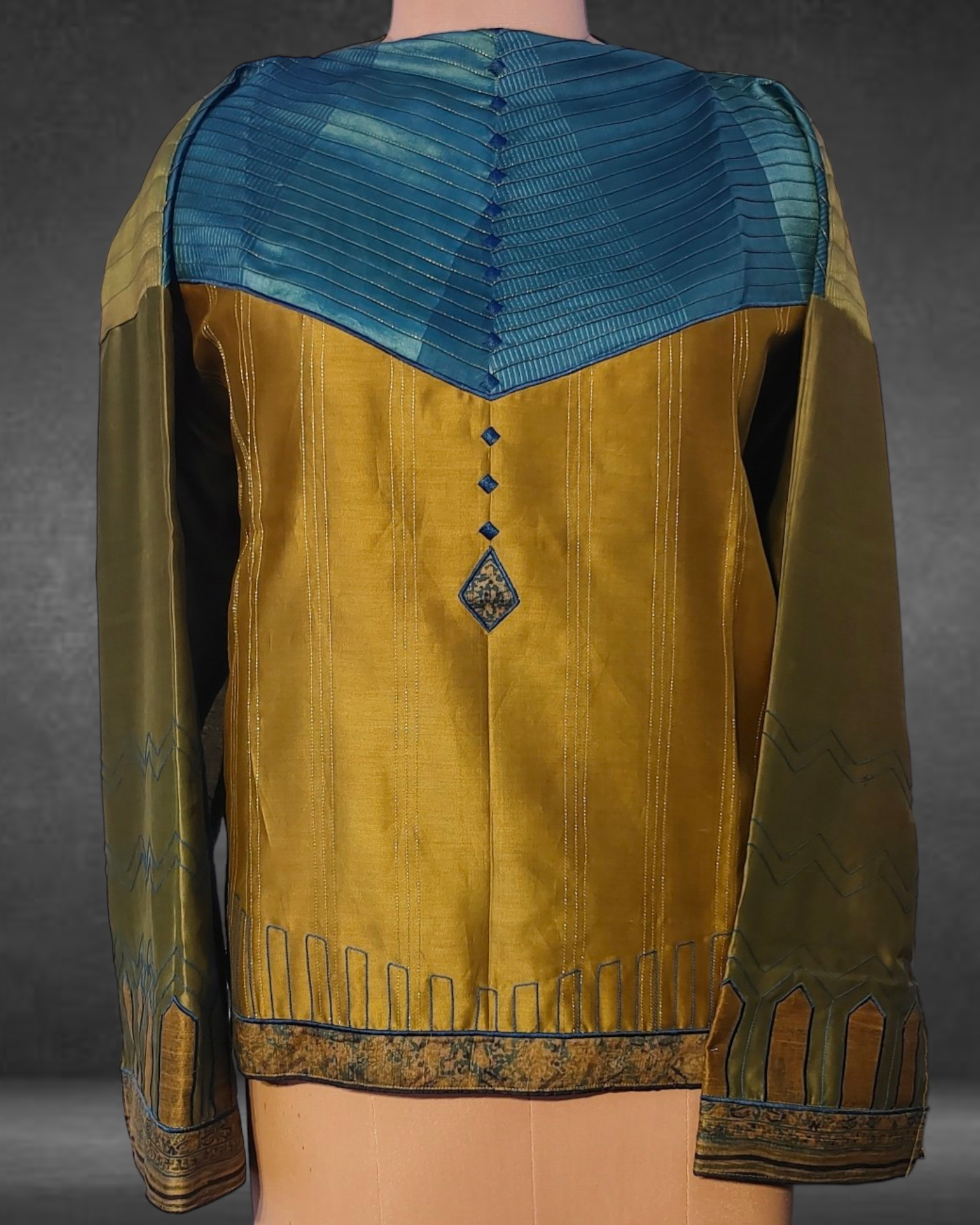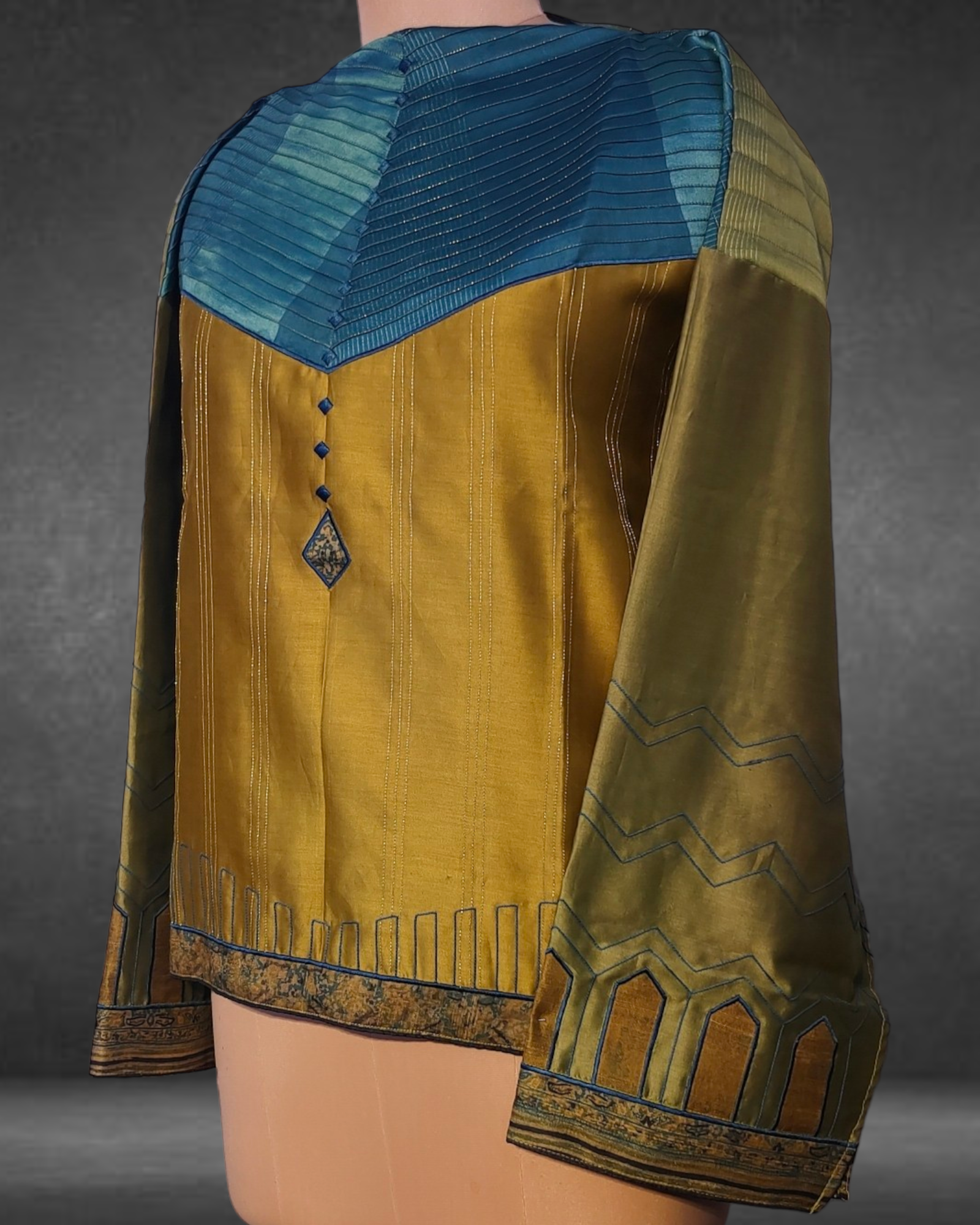 The short kurta can be styled in various ways and shortened to the desired length as there is no neckline given. The tunic length is 24", with 30" width as a one-side ghera and sleeves at 20".These measurements are very flexible and can be reduced as per the required sizeset.