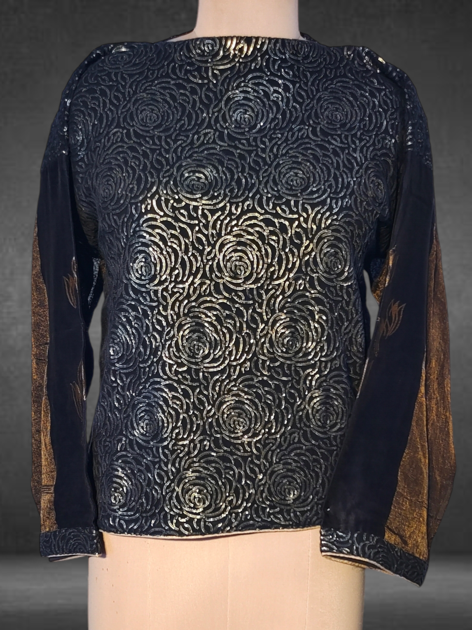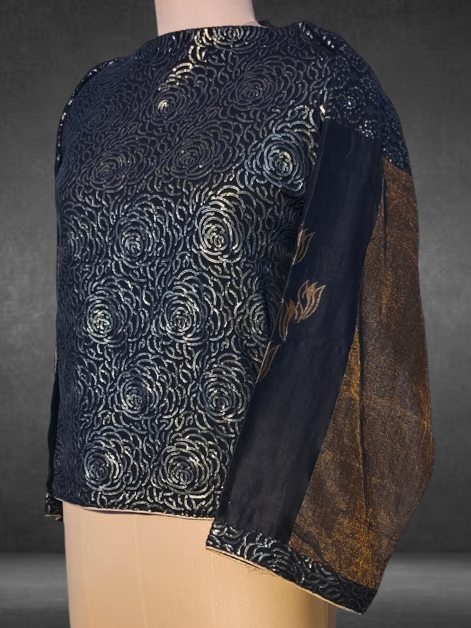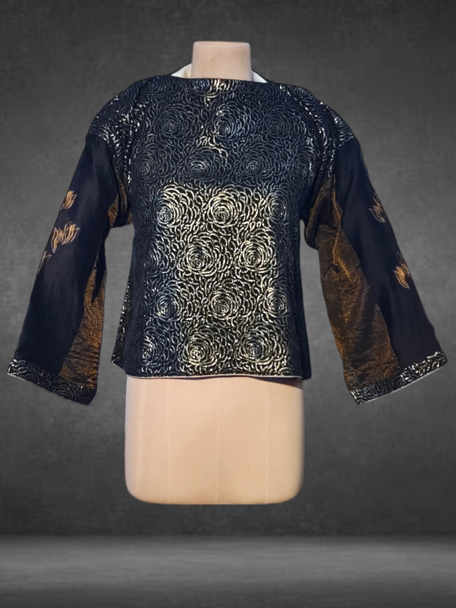 The short kurta can be styled in various ways and shortened to the desired length as there is no neckline given. The tunic length is 24", with 30" width as a one-side ghera and sleeves at 20".These measurements are very flexible and can be reduced as per the required sizeset.