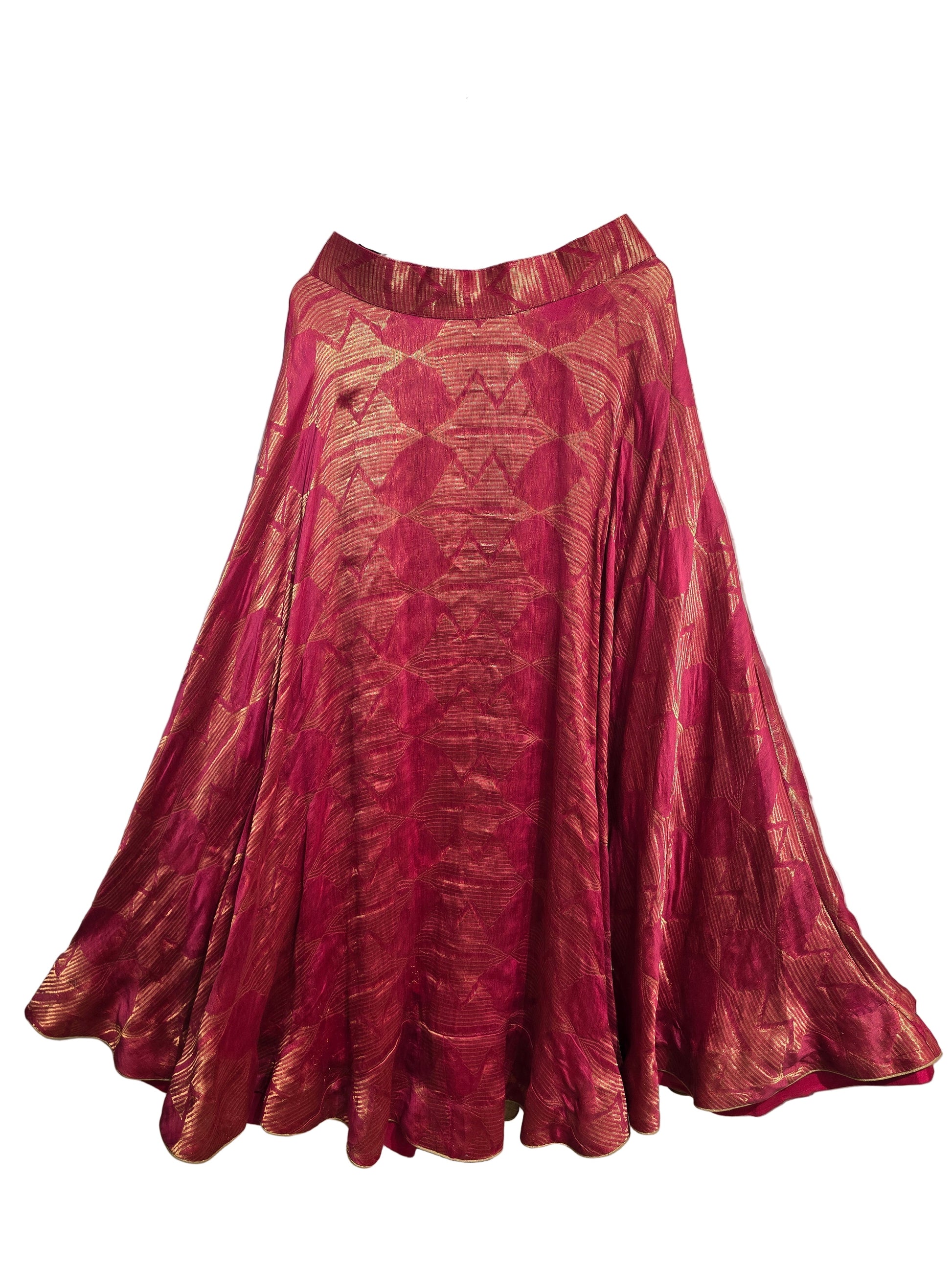 The dress can be styled also with dhoti pants. The blouse length is 20"(unstitched), with 28" width as a one-side ghera and sleeve opening at 13".These measurements are very flexible and can be reduced as per the required sizeset.